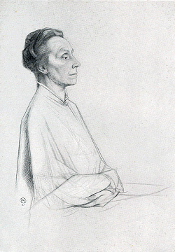 Like many militant socialists of the time, Henriette Goverdine Anna Roland Holst–van der Schalk (“Jet” for her friends, I’ll call her HRH) came from a privileged background.  The van der Schalk family belonged to the upper echelons of the Dutch bourgeoisie: enormously wealthy, conventional, and “liberal” in the European sense, i.e. pro-business and the entrepreneurial class.  As was customary in her milieu, HRH was brought up by servants and tutors in a stifling, authoritarian atmosphere.  Her father typically ignored the exceptionally gifted but headstrong girl, while her mother, more sympathetic, suffered from poor health.  Not surprisingly, HRH rebelled while seeking refuge in poetry.  When a concerned uncle warned her at the age of twelve that at some point, she’d need to comply with her parents’ wishes and be a lady, she shrugged it off: ”I’ll be a poet anyway.”  Her father’s accidental death when she was 23 liberated her from all kinds of constraints–her ailing mother never was a match for her will power.  She immediately befriended the writer Albert Verwey and his very unconventional wife Kitty van Vloten, and the successful avant-garde poet Herman Gorter.  A year later, through the Verweys, she met the artist Richard (“Rik”) Roland Holst and fell in love.
